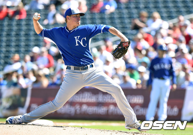 캔자스시티 애런 브룩스가 역투하고 있다.