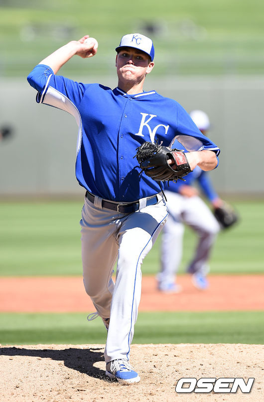 캔자스시티 애런 브룩스가 역투하고 있다.