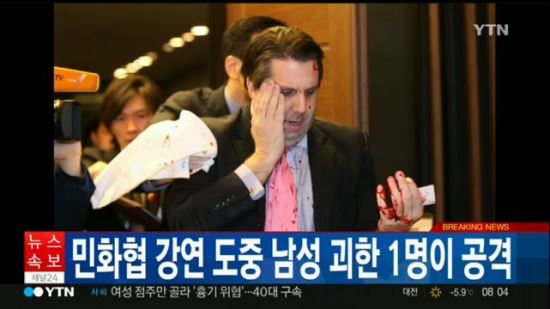 이후 실려나가는 미 대사 얼굴이 피투성이가 돼서 업혀 나간 것으로 전해졌다. 리퍼트 대사의 부상 정도는 알려지지 않았다.