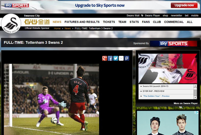 스완지 시티는 기성용의 슈팅이 골키퍼 다리 사이를 통과하는 순간포착 사진까지 게재해 기성용에게 힘을 실어줬다. 기성용의 대활약에도 불구하고 스완지 시티는 2-3으로 졌다. 기성용이 골을 넣으면 승리한다는 공식도 아쉽게 깨지고 말았다. 그럼에도 기성용의 활약은 단연 빛났다.
