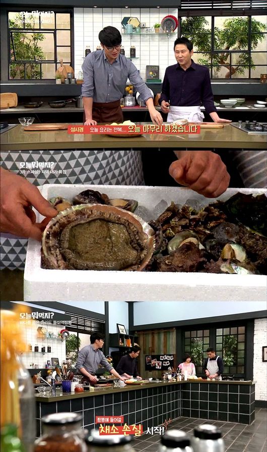 3월 ‘오늘 뭐 먹지’에서는 크기와 신선함부터 남다른 각 지역의 신선한 재료들을 만날 수 있다. 특히 5일 방송에서는 “사람 얼굴보다 큰 전복이 어디 있냐”는 신동엽의 말이 끝나기 무섭게 축구공 크기의 거대한 자연산 전복이 등장해 두 MC의 눈이 휘둥그레 커져 안방극장에 웃음을 선사할 전망. 이 밖에도 제주 마라도의 신선한 돌미역과 뿔소라, 전남 벌교 장도에서 직접 잡아온 꼬막 등 대가들이 직접 공수해 온 각 지역의 신선한 특산물로 한층 업그레이드된 요리에 도전할 계획.