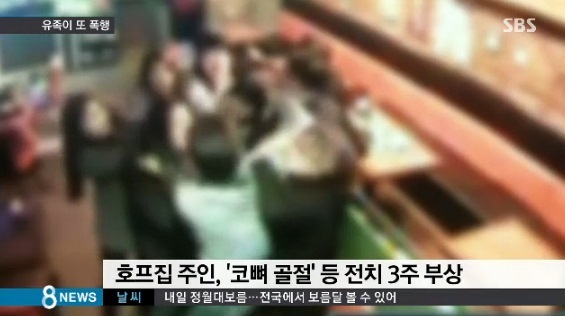 폭행을 당한 호프집 주인은 코뼈가 골절 되는 등 전치 3주 부상을 당했고, 싸움을 말리던 다른 손님 역시 머리카락이 뽑히는 등 마찬가지로 전치 3주 부상을 당했다.