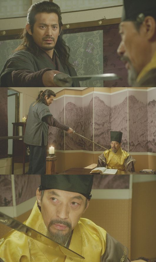 5일 JTBC 조선연애사극 ‘하녀들’(극본 조현경, 연출 조현탁)에서 평생 만월당을 위해 살아온 무명(오지호 분)가 당의 주인인 김치권(김갑수 분)를 향해 칼을 겨누고 있는 사진이 공개됐다.