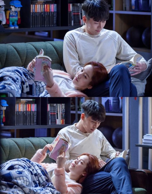 이번에 공개된 사진은 로빈의 작업실에서 휴식을 취하고 있는 현빈과 한지민의 모습을 포착한 것. 두 사람은 아늑한 작업실에서 한적한 둘 만의 시간을 보내고 있다. 각각 손에 순정 만화책과 요리 만화책을 들고 집중해 보고 있는 현빈과 한지민의 모습에서 그 어느 때 보다 평화로운 표정과 분위기를 느낄 수 있다.