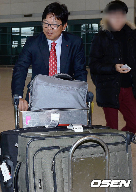 LG 양상문 감독이 입국장을 나서고 있다.