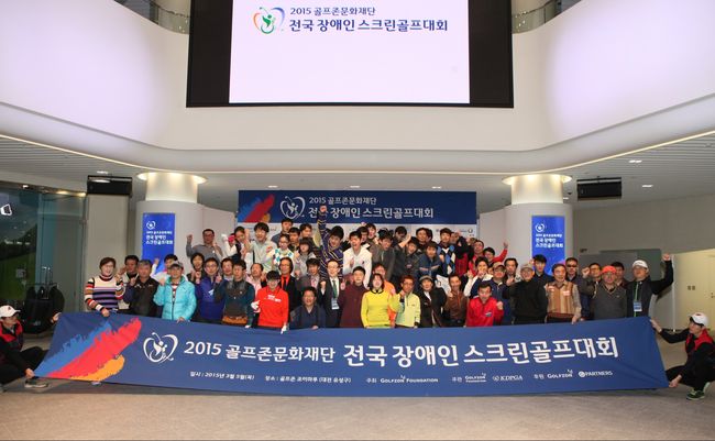 골프존 그룹의 사회공헌 재단인 (재)골프존문화재단이 주최하고 대한장애인골프협회가 주관하는 '2015 전국 장애인 스크린골프대회'가 대전 유성구의 골프존 조이마루에서 5일 개최됐다.