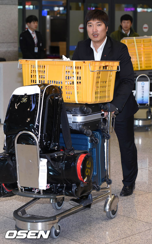 5일 오후 인천 영종도 인천국제공항을 통해 프로야구 구단 LG 트윈스 선수들이 전지훈련을 마치고 귀국했다.