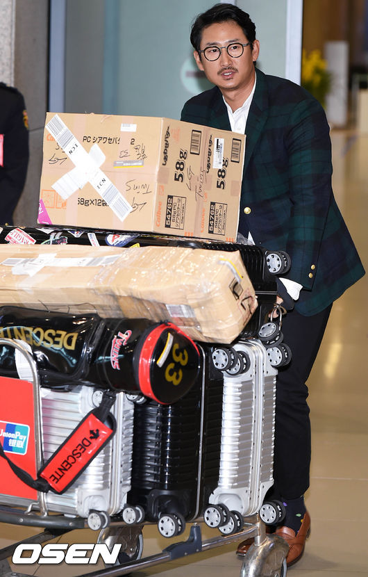 LG 박용택이 입국장을 나서고 있다.