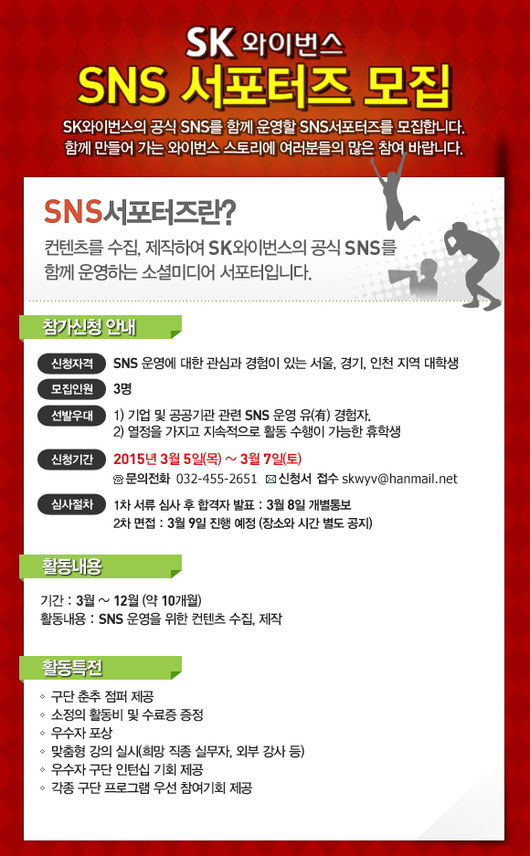 SK는 SNS(페이스북, 블로그, 유투브 등)를 활발히 사용하고 동영상사진촬영글쓰기에 소질이 있는 대학생을 우선적으로 선발할 계획이다.