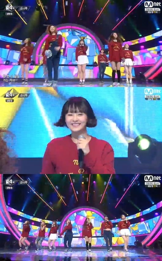 이날 소나무는 ‘가는거야’를 열창했다. 발랄하고 상큼한 표정으로 칼군무를 소화하는 소나무의 파워풀한 무대가 시선을 사로잡았다.