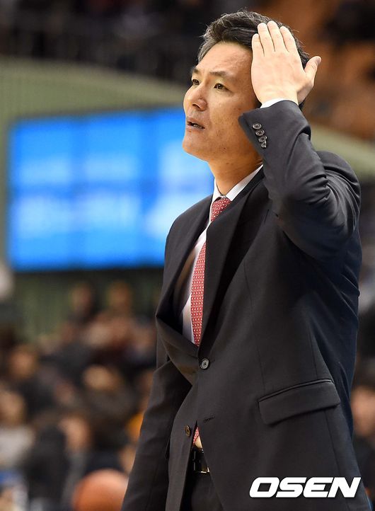 2쿼터, 동부 김영만 감독이 선수들의 플레이를 지켜보며 머리를 넘기고 있다.