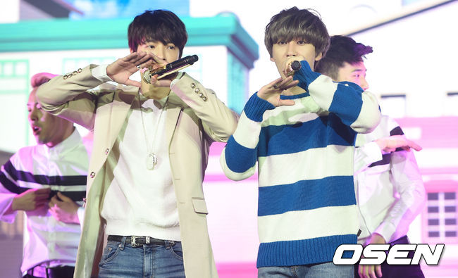 5일 오후 서울 삼성동 SM타운 코엑스 아티움에서 진행된 슈퍼주니어-D&E 국내 첫 앨범 '더 베스트 고우즈 온(The Beat Goes On)' 기념 쇼케이스, 슈퍼주니어 동해와 은혁이 멋진 무대를 펼치고 있다.