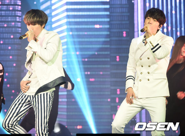 5일 오후 서울 삼성동 SM타운 코엑스 아티움에서 진행된 슈퍼주니어-D&E 국내 첫 앨범 '더 베스트 고우즈 온(The Beat Goes On)' 기념 쇼케이스, 슈퍼주니어 동해와 은혁이 멋진 무대를 펼치고 있다.