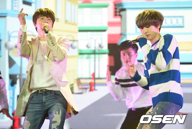 5일 오후 서울 삼성동 SM타운 코엑스 아티움에서 진행된 슈퍼주니어-D&E 국내 첫 앨범 '더 베스트 고우즈 온(The Beat Goes On)' 기념 쇼케이스, 슈퍼주니어 동해와 은혁이 멋진 무대를 펼치고 있다.