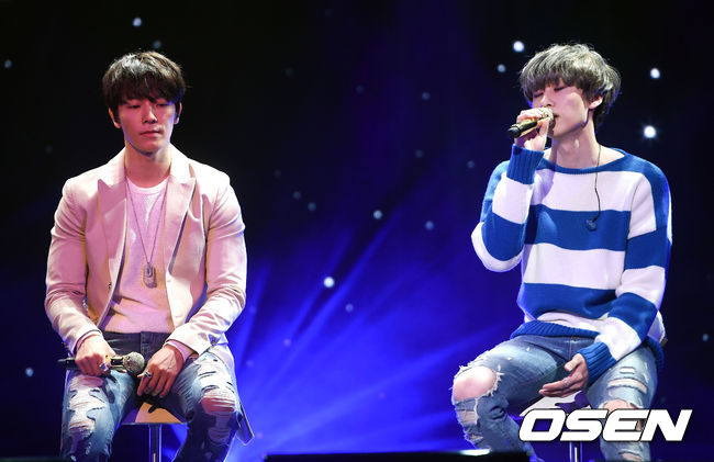 5일 오후 서울 삼성동 SM타운 코엑스 아티움에서 진행된 슈퍼주니어-D&E 국내 첫 앨범 '더 베스트 고우즈 온(The Beat Goes On)' 기념 쇼케이스, 슈퍼주니어 동해와 은혁이 멋진 무대를 펼치고 있다.