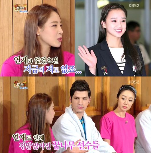 신수지는 5일 오후 방송된 KBS 2TV ‘해피투게더 시즌3(이하 ’해투‘)’에서 “손연재가 고맙다”라고 밝혔다.