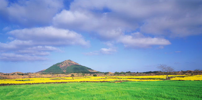 중문 해안과 아래는 유채꽃과 오름 / 제주특별자치도 제공
