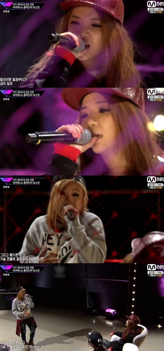 5일 방송된 케이블채널 Mnet ‘언프리티 랩스타’에서는 MC메타의 제안으로 타이미와 졸리브이의의 디스전이 시작됐다.
