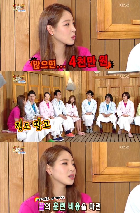 신수지는 5일 오후 방송된 KBS 2TV ‘해피투게더 시즌3(이하 ’해투‘)’에서 “한달에 3천, 많을 때는 4천만 원 정도 들었다”라고 말했다.