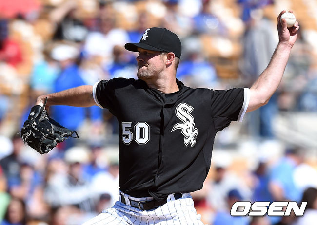 시카고 화이트삭스 존 댕크스가 역투하고 있다.