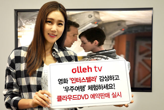 올레tv는 국내에서 천만 관객을 동원한 할리우드 블록버스터 ‘인터스텔라’ 클라우드DVD 예약판매를 실시한다. 예약구매 시 특별 다큐멘터리 ‘인터스텔라의 과학(51분)’ 등 부가 영상이 단독으로 제공된다. ‘인터스텔라’ 본편 시청은 오는 17일부터 가능하며, 풀HD 화질로 평생소장 및 무한시청, 모바일 기기로 이어보기가 가능한 ‘클라우드DVD’ 형태로 서비스 된다.
