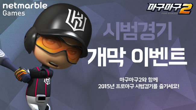 넷마블게임즈(이하 넷마블)가 모바일 야구 게임 ‘마구마구2’(개발사 넷마블블루)에서 2015 프로야구 시범 경기 개막 이벤트를 진행한다.