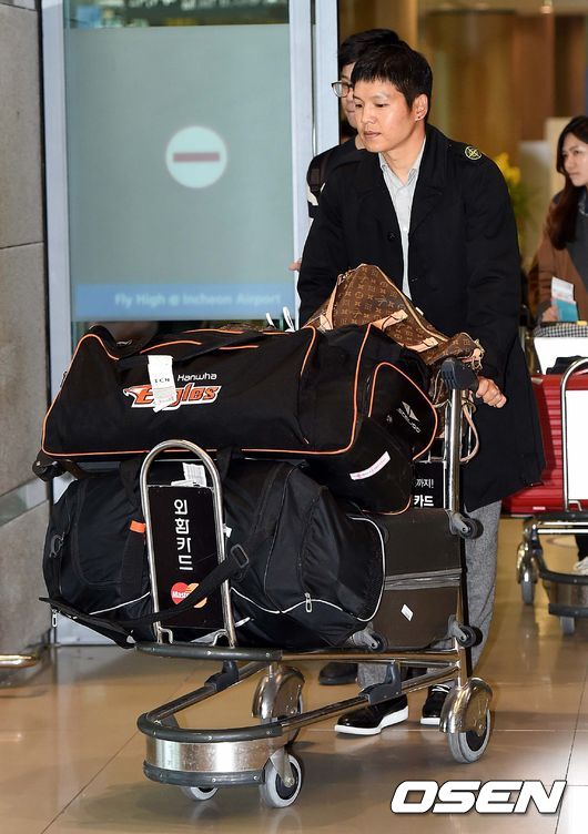 한화 김성근 감독을 비롯한 투수들이 6일 오후 인천국제공항을 통해 일본 오키나와에서 추가훈련를 마치고 귀국했다.
