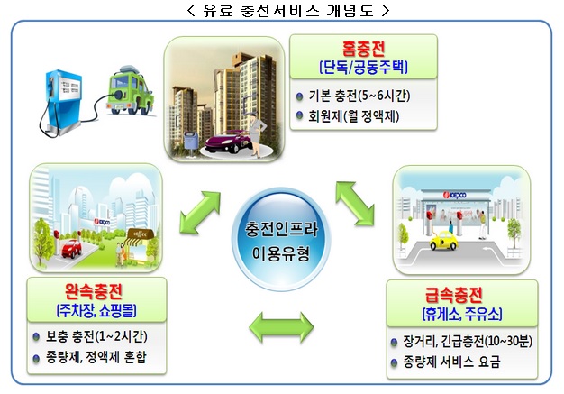이에 따라, 민관 합동으로 시장시스템을 적용해 민간기업이 주유소와 같이 충전소를 구축하고 24시간 유료충전 서비스를 제공함으로써 충전인프라 부족문제를 해소하기로 했다.