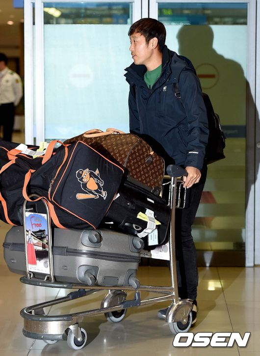 KIA 타이거즈로 복귀한 윤석민이 6일 오후 인천국제공항을 통해 귀국하고 있다.