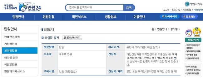 조상땅찾기는 사망한 조상의 토지소유 내역을 조회하기 위해 청하는 민원사무로, 정부의 민원 포털 서비스인 '민원 24'를 통해 구체적인 절차를 안내 받을 수 있다.