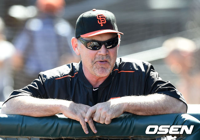 선수들과 이야기 나누는 샌프란시스코 보치 감독