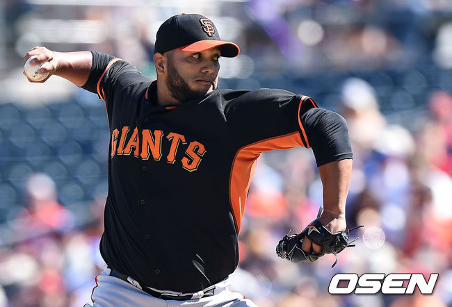 샌프란시스코 유스메이로 페티트가 역투하고 있다.