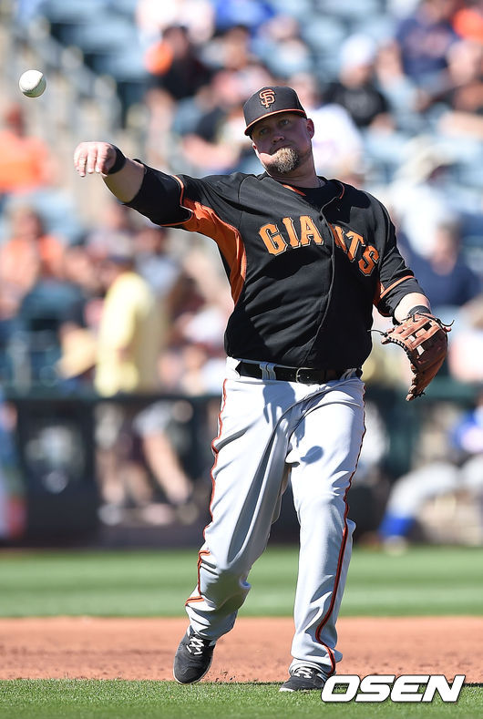 샌프란시스코 케이시 맥기가 송구를 하고 있다.