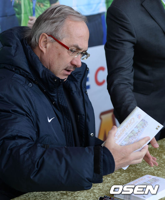 슈틸리케 감독이 사인회에 참석해 준비하고 있다.