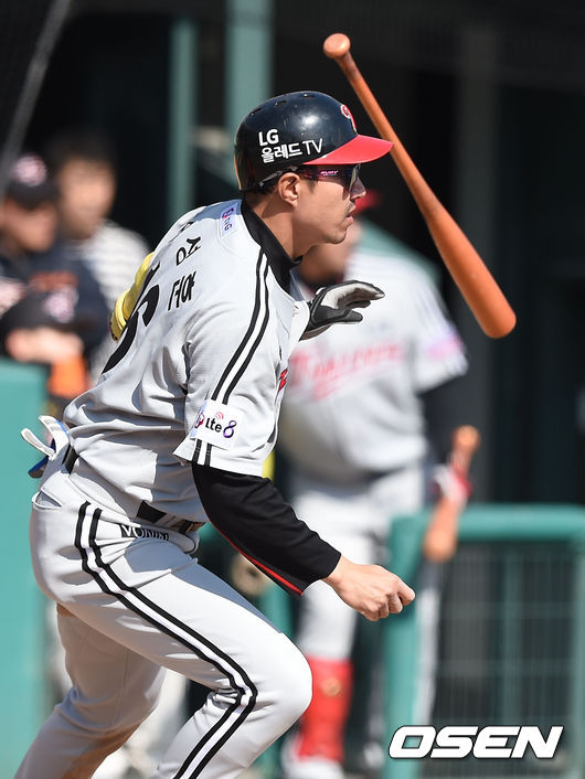7일 오후 대전 한밭구장에서 열린 ‘2015 타이어뱅크 KBO 리그’ 시범경기 한화 이글스와 LG 트윈스의 경기,5회초 2사 1,2루 LG 정성훈이 1타점 적시타를 날리고 있다.