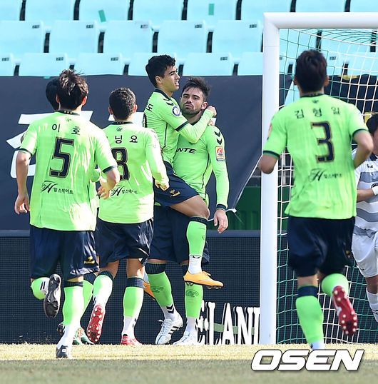 전북의 계속된 공격은 결국 전반 38분 득점으로 연결됐다. 박스 왼쪽을 침투하던 이재성이 성남 김철호의 발에 걸려 페널티킥이 선언됐다. 키커로 나선 에두는 골대 구석을 정확히 향하는 슈팅으로 성남의 골문을 흔들었다.