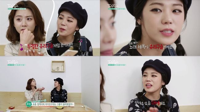이에 박수진은 리지에게 “요즘 아이돌 노래를 불러보면 이름을 맞혀보겠다”고 말했고, 리지는 즉석에서 여자친구의 데뷔곡 ‘유리구슬’을 불렀다.