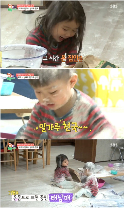 태린, 태오 남매는 엄마가 외출한 사이 아빠와 함께 반죽 만들기에 돌입했다. 그러나 아빠 리키김이 잠깐 화장실을 다녀온 사이 아이들은 온 집안을 밀가루 난장판으로 만들어 놓았다. 밀가루를 눈처럼 가지고 논 것.