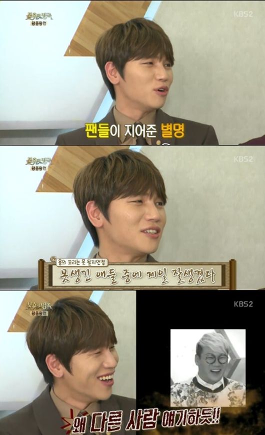 이날 케이윌은 별명에 대해 “팬들이 지어준 별명이 있다. 뱀의 머리다. 못생긴 애들 중 제일 잘 생겨서”라고 말했다.