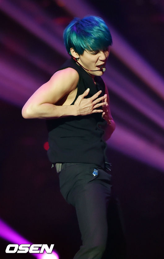 7일 오후 서울 잠실 실내체육관에서 열린 ‘2015 시아 써드 아시아 투어 콘서트-플라워(2015 XIA 3rd ASIA TOUR CONCERT-FLOWER)’서 김준수가 열창을 하고 있다.