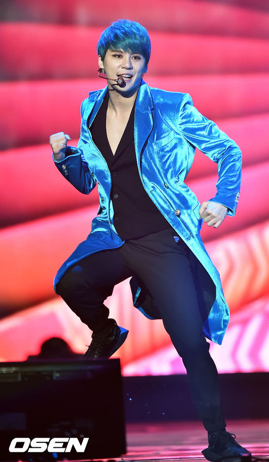 7일 오후 서울 잠실 실내체육관에서 열린 ‘2015 시아 써드 아시아 투어 콘서트-플라워(2015 XIA 3rd ASIA TOUR CONCERT-FLOWER)’서 김준수가 열창을 하고 있다.