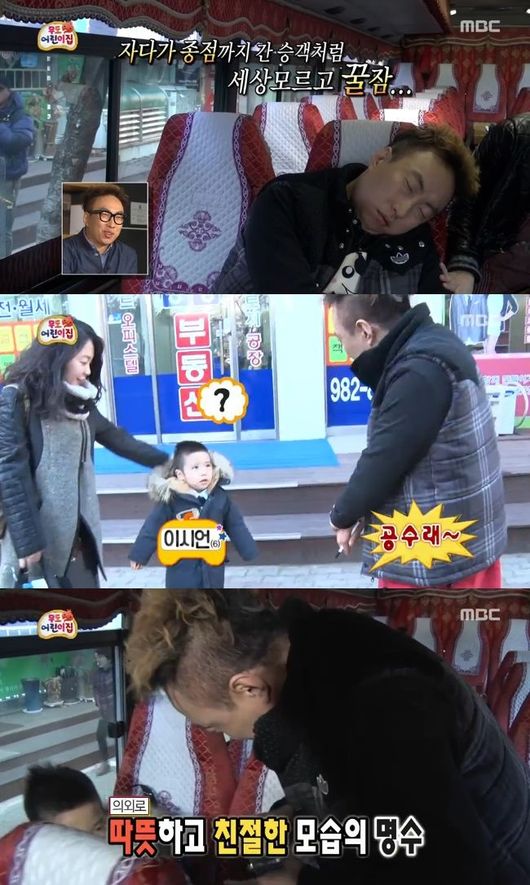 박명수가 등원 지도를 앞두고 버스에서 잠을 자는 모습을 보였다.