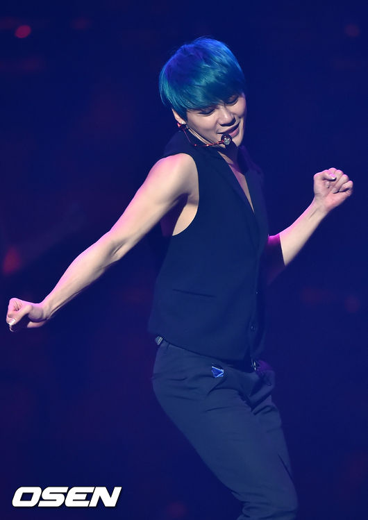 7일 오후 서울 잠실 실내체육관에서 열린 ‘2015 시아 써드 아시아 투어 콘서트-플라워(2015 XIA 3rd ASIA TOUR CONCERT-FLOWER)’서 김준수가 열창을 하고 있다.