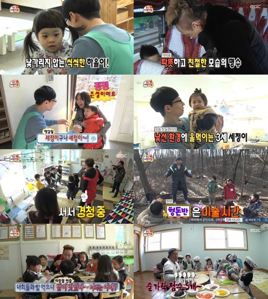 정준하는 아이들을 웃게 해주기 위해 돼지 탈을 준비하는 등의 정성을 보였고, 아이들이 어떤 행동을 하든 반응을 크게 해주며 아이들에게 큰 호응을 얻었다. 숲 속 유치원에 간 하하는 동심에 맞게 아이들과 함께 어울려 놀았다. 하하는 "여기가 내가 꿈꾸던 곳"이라며 웃어보였다. 쌍둥이 아빠인 정형돈 역시 능숙하게 아이를 돌봤다. 떼를 쓰는 아이를 잘 댈랬고, 바지에 실례를 한 아이에게 다정하게 "괜찮다"고 말해준 뒤 능수능란하게 옷을 갈아입혔다.