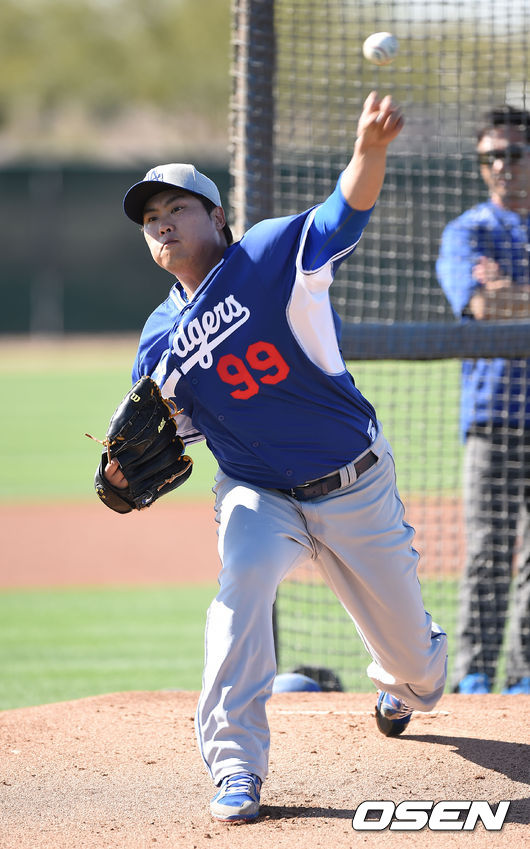 LA 다저스 류현진이 8일(한국시각) 미국 애리조나주 글렌데일 캐멀벡랜치에서 라이브 피칭을 소화했다.