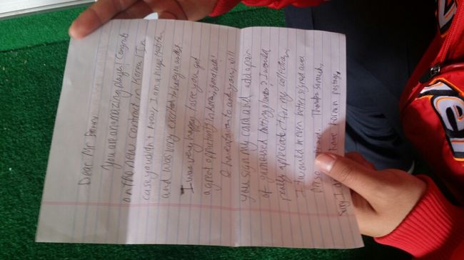 그리고 8일 롯데와의 2차전에 앞서 특별한 사연을 들을 수 있었다. SK 관계자는 “브라운이 어제 경기 전에 미국에서부터 편지를 받았다”고 전했다. 메이저리그의 뉴욕 메츠팬인 13살 소년이 구단 사무실로 직접 편지를 부친 것이다. 브라운은 2013~2014시즌 뉴욕 메츠에서 활약한 바 있다. 그 당시 팬이 한국까지 편지를 보내는 것은 흔치 않은 일이었다.