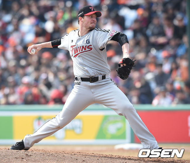 8일 오후 대전 한밭구장에서 열린 ‘2015 타이어뱅크 KBO 리그’ 시범경기 한화 이글스와 LG 트윈스의 경기, 1회말 LG 선발투수 루카스가 역투하고 있다.