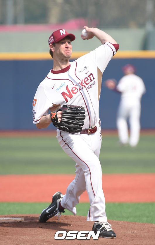 밴 헤켄은 8일 목동구장에서 열린 '2015 타이어뱅크 KBO 리그' kt wiz와의 시범경기에 선발 등판해 3이닝 1피안타 4탈삼진 무사사구 무실점으로 호투했다. 3이닝 동안 투구수가 36개에 불과했다.