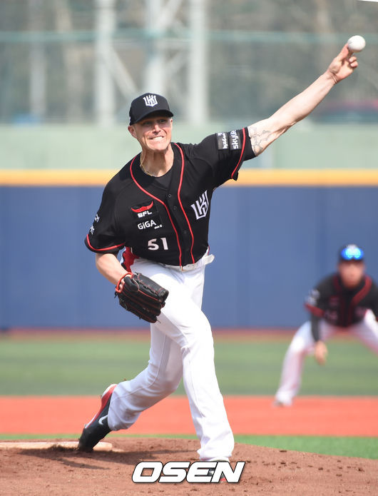 kt wiz 좌완 투수 앤디 시스코가 시범경기 첫 등판에서 홈런포를 맛봤다