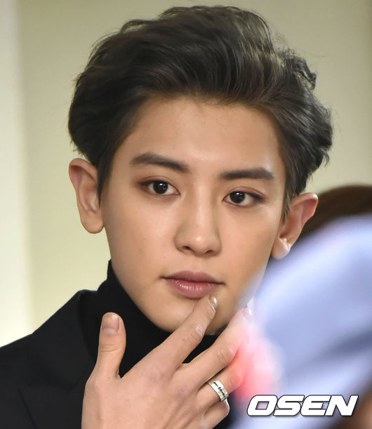 그룹 엑소의 두 번째 단독콘서트가 열리기 전 벌어진 기자회견에서 엑소 찬열이 입장을 기다리고 있다. 이탈한 크리스, 루한 없는 10인 멤버로서의 콘서트는 이번이 처음이다.